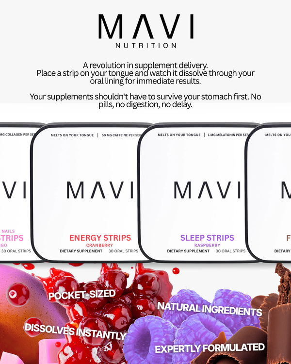 Six dissolvable wellness strips designed to fit your modern life—energy, focus, beauty, recovery, iron & sleep.